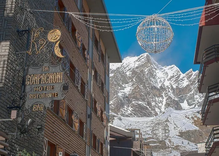 L'Hotel Da Compagnoni Breuil-Cervinia si trova a soli 550 metri dalla Vista Cervino e accoglie gli ospiti con cure termali e dei servizi spa. Questo hotel offre 21 camere nella zona sciistica della città, a breve distanza dalla Località Sciistica Cervinia-Valtournenche, altamente consigliato come luogo di divertimento.
